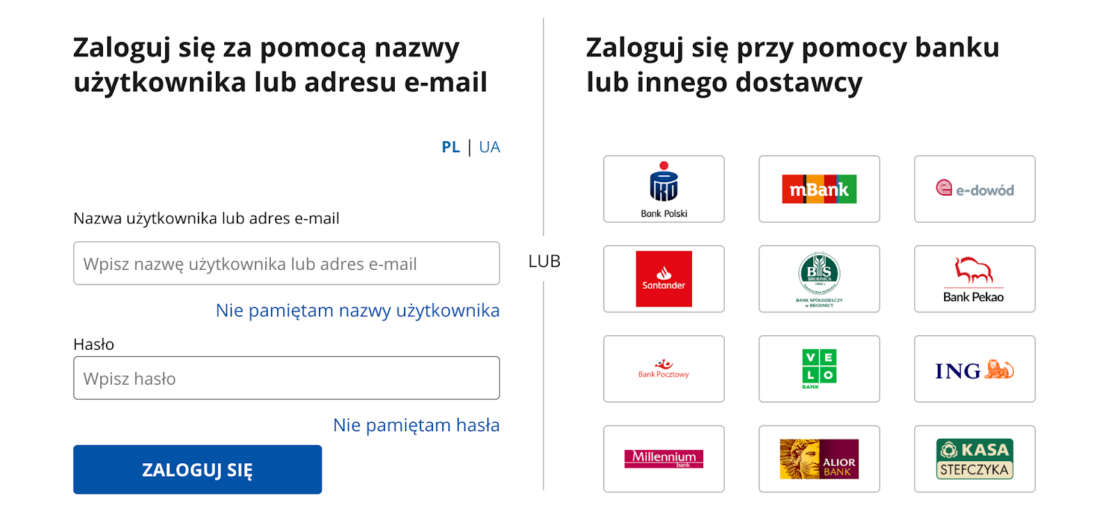 – „mObywatel” oraz „gov.pl gov.pl Serwis Rzeczypospolitej Polskiej”. Taka konstrukcja zaburza logiczną strukturę treści i utrudnia nawigację użytkownikom czytników ekranu.